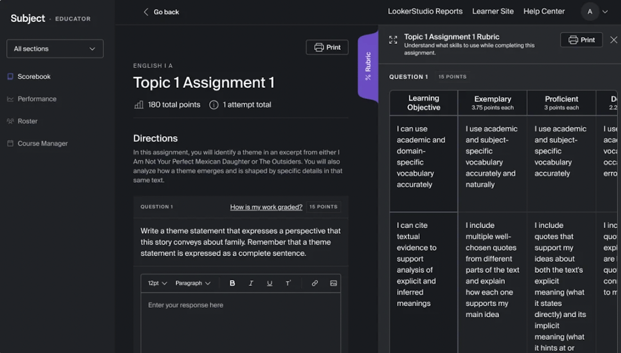 Teachers can now see clear, question-level rubrics directly within lessons. These rubrics outline expectations and point values in a way that supports everyday grading and aligns to standards, all in one place.